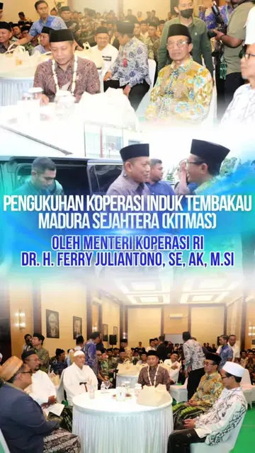 @bupatipamekasanreal Pengukuhan Koperasi Induk Tembakau Madura Sejahtera (KITMAS) Ini menjadi momentum bersejarah bagi pelaku UMKM dan petani tembakau di Madura, dengan dikukuhkannya Koperasi Induk Tembakau Madura Sejahtera (KITMAS) oleh Menteri Koperasi RI, Dr. H. Ferry Juliantono, SE, AK, M.Si. KITMAS hadir sebagai wadah penguatan ekonomi tembakau Madura memperkokoh sinergi antara petani, pengolah, dan pelaku industri melalui pendekatan koperasi yang profesional, inklusif, dan berkelanjutan. Dalam sambutannya, Menteri Koperasi RI menyampaikan bahwa pemberdayaan koperasi tembakau merupakan langkah strategis untuk meningkatkan daya saing produk lokal, pemerataan ekonomi, dan membuka peluang pasar yang lebih luas. Dengan semangat kolaborasi, KITMAS akan menjadi motor penggerak ekonomi masyarakat tembakau Madura, mulai dari peningkatan kualitas produk, akses pembiayaan, hingga pembinaan kapasitas anggota. Terima kasih kepada semua pihak yang telah mendukung, khususnya jajaran pengurus, petani, pelaku industri, serta pemerintah daerah. Bersama kita bangun tembakau Madura yang maju, mandiri, dan berdaya saing tinggi. Momen bersejarah ini akan menjadi tonggak baru kebangkitan koperasi tembakau di tanah kelahiran kita. #BupatiPamekasan #KITMAS #KoperasiTembakauMaduraSejahtera #MenteriKoperasiRI #FerryJuliantono ♬ suara asli - BUPATI PAMEKASAN