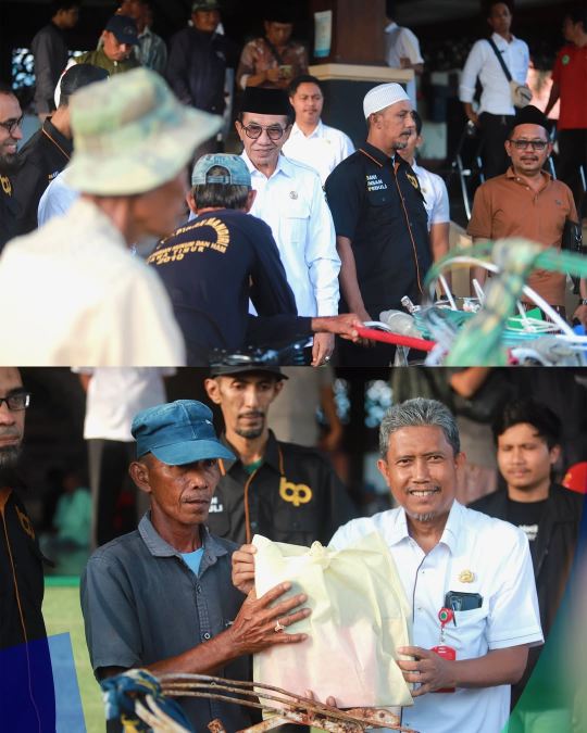 Pemkab Pamekasan- Pemerintah Kabupaten (Pemkab) Pamekasan, Madura, Jawa Timur membagikan ratusan paket bantuan kepada para abang becak di Pendopo Ronggosukowati, Rabu (11/3/2026) sore.