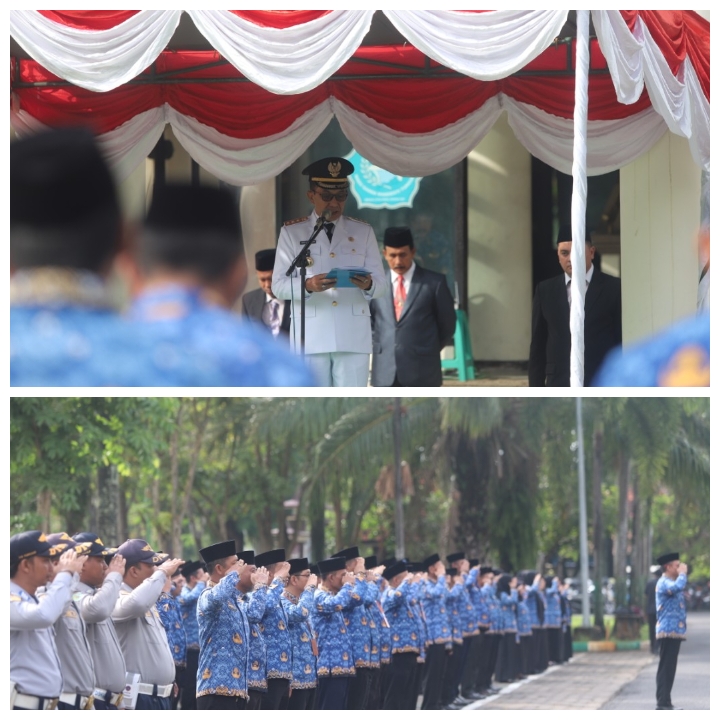 Bupati Pamekasan, Dr. KH. Kholilurrahman yang bertindak sebagai pembina upacara membacakan sambutan Menteri Dalam Negeri (Mendagri), Muhammad Tito Karnavian.