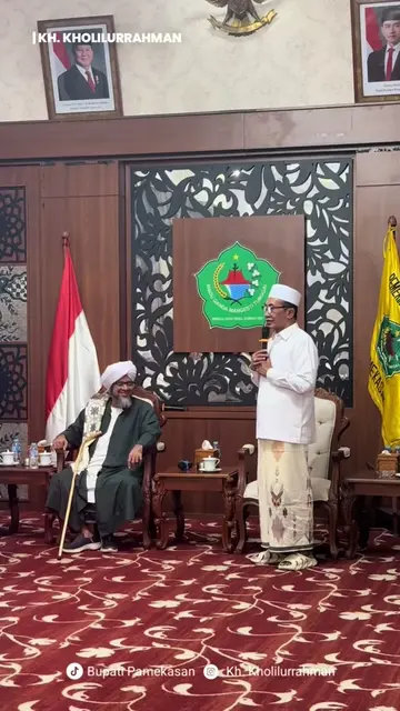 @bupatipamekasanreal Alhamdulillah, Bupati Pamekasan KH. Kholilurrahman menerima kunjungan kehormatan Dr. Habib Alwi bin Abdullah Al Idrus Al Yamani, Pimpinan Ma’had Alaydrus Tarim, Hadramaut Yaman, di Peringgitan Pendopo Agung Ronggosukowati, Pamekasan. Kunjungan ini menjadi momentum penuh berkah dan silaturahmi antara ulama dari tanah Hadramaut dengan Pemerintah Kabupaten Pamekasan. Dalam pertemuan tersebut, Habib Alwi menyampaikan pesan penting tentang pentingnya sinergi antara ulama dan umara’ dalam membangun masyarakat yang berakhlak, berilmu, dan sejahtera. Bupati Pamekasan menyampaikan rasa syukur dan kebanggaan atas kehadiran ulama besar tersebut di bumi Gerbang Salam. Ia berharap kunjungan ini semakin mempererat hubungan spiritual dan intelektual antara Pamekasan dengan pusat keilmuan Islam dunia, khususnya Tarim Hadramaut. Pertemuan berlangsung penuh kehangatan, diakhiri dengan doa bersama agar Pamekasan senantiasa mendapat limpahan rahmat dan keberkahan dari Allah SWT. #bupatipamekasan #pemkabpamekasan #habibalwialidrus #mahadalaydrus #hadaramaut ♬ suara asli - BUPATI PAMEKASAN
